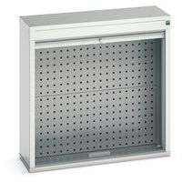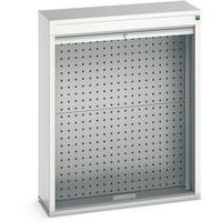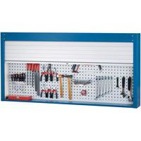 Muurkast met schuifdeur. Hang al uw gereedschap zichtbaar op in deze roldeurkast. Op te hangen of te plaatsen op uw werkbank. Eenvoudig te openen en sluiten dankzij de aluminium roldeur. Afsluitbaar met ingebouwd slot. Toon meer Toon minder