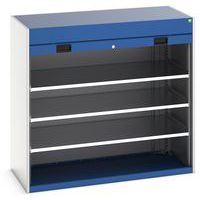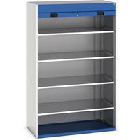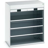 Ruimtebesparend en meer bewegingsvrijheid Roldeur af te sluiten met sleutel Legborden van gegalvaniseerd staal verstelbaar in stappen van 25 mm Maximaal draagvermogen per legbord is 100 kg en 160 kg voor de breedte 1300 mm Veiligheidstips: - Plaats het meubel op een vlak oppervlak - Bevestig het aan de muur of een scheidingswand met een speciale bevestiging - Let erop dat u de aanbevolen maximale belasting niet overschrijdt en zorg voor een goede verdeling Toon meer Toon minder