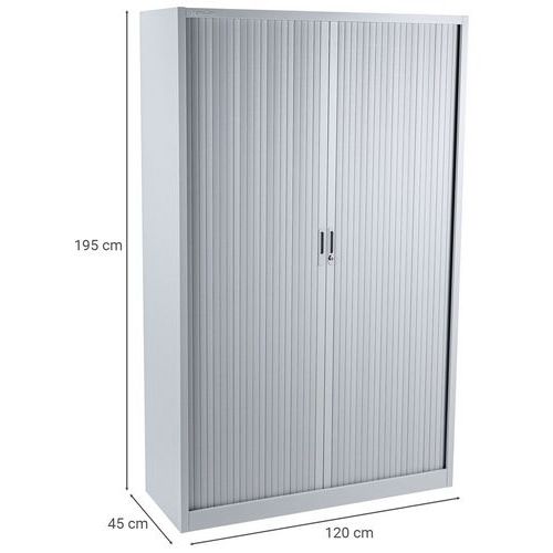 Ervaar het gebruiksgemak van deze extra brede compacte hoge kast. Verstel de legborden en gebruik ze ook voor hangmappen. Met krasbestendige epoxy-afwerking. Sluit de kunststof roldeur af met het cilinderslot. Veiligheidstips: - Plaats het meubel op een vlak oppervlak - Bevestig het aan de muur of een scheidingswand met een speciale bevestiging - Let erop dat u de aanbevolen maximale belasting niet overschrijdt en zorg voor een goede verdeling