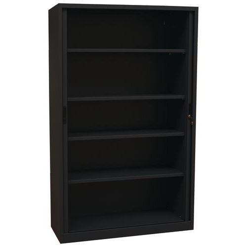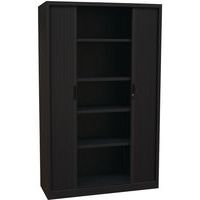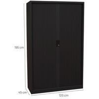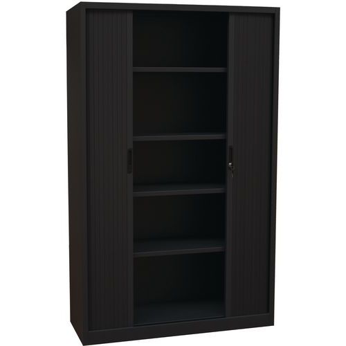 Ervaar het gebruiksgemak van deze extra brede compacte hoge kast. Verstel de legborden en gebruik ze ook voor hangmappen. Met krasbestendige epoxy-afwerking. Sluit de kunststof roldeur af met het cilinderslot.