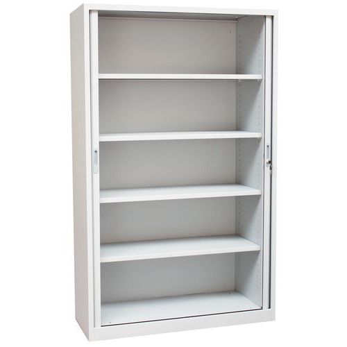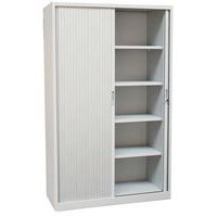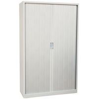 Ervaar het gebruiksgemak van deze extra brede compacte hoge kast. Verstel de legborden en gebruik ze ook voor hangmappen. Met krasbestendige epoxy-afwerking. Sluit de kunststof roldeur af met het cilinderslot.