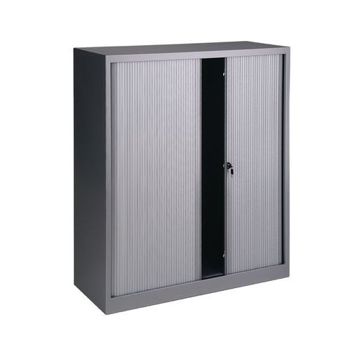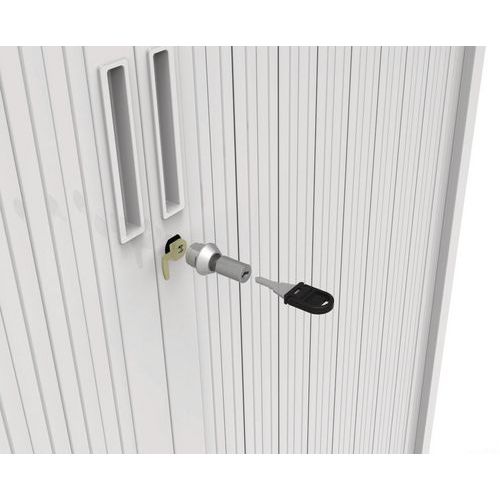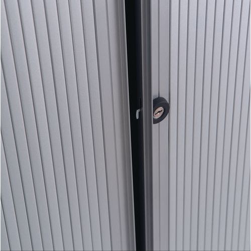 - Berg uw documenten veilig op in deze stalen kast met kunststof roldeuren.