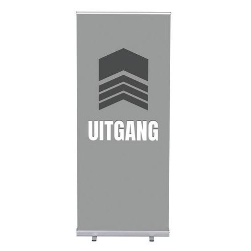 De Roll-Banner is een lichtgewicht cassette met inhoudsopdruk, die na gebruik eenvoudig kan worden opgerold en ingepakt.