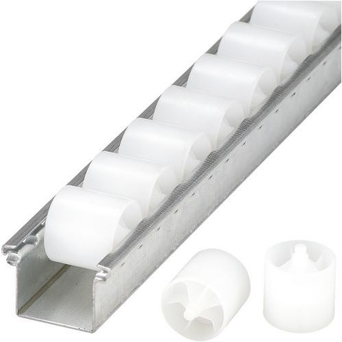 Rail met rollen die zijn versterkt met groeven.