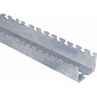 Kunststof rollenband voor zware lasten, lengte 2400 mm. Permanent gesmeerde gegalvaniseerde as in glad lager. Rail met draagprofiel dat per 24 mm is doorboord voor bevestiging.