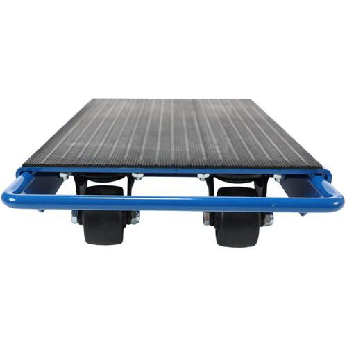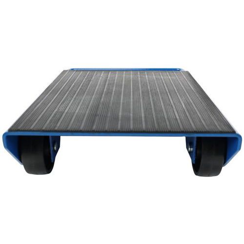 Roller met 2 zwenkrollen en 2 vaste rollen - Draagvermogen 1 t - Manutan Expert Roller met 2 vaste rollen en 2 zwenkrollen van nylon, draagvermogen 1000 kg. Plateau van 310 x 425 mm met bekleding van pvc met een dikte van 4 mm. Rol van Ø 76 x 45 mm.