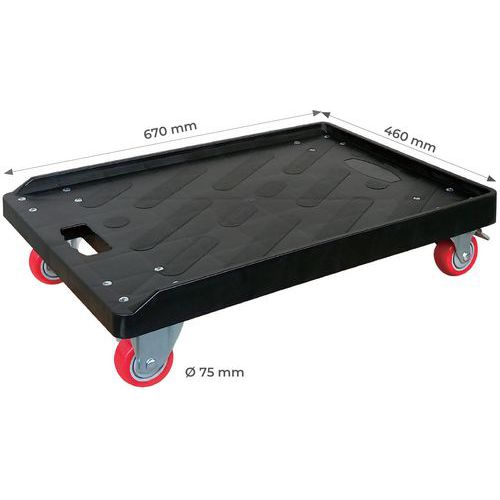 | Productnaam | Rolplateau polypropyleen met rand 300 kg, Max. belasting: 300 kg, Breedte plateau: 460 mm |