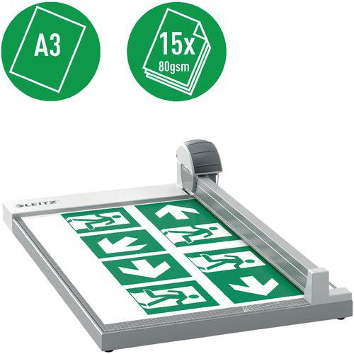 | Productnaam | Rolsnijmachine Precision Office A3, Snijvermogen (aantal vellen ±): 15, Productgewicht: 1690 g |