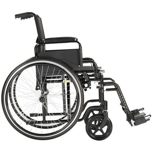 | Productnaam | Rolstoel met vaste rugleuning zwart, Zitdiepte: 42 cm, Zithoogte: 48 cm, Productgewicht: 18.5 kg |