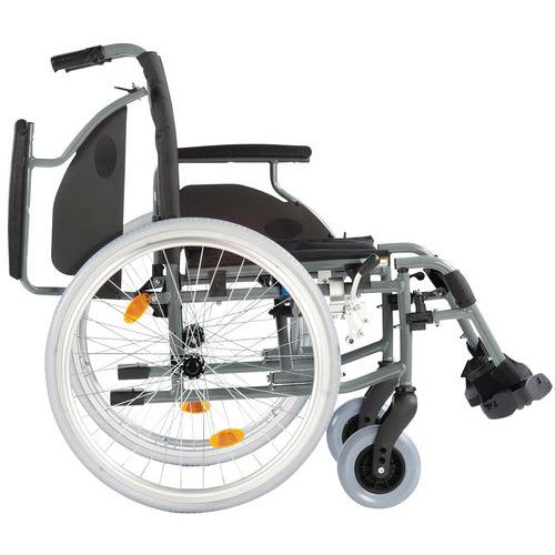 | Productnaam | Rolstoel, vaste rugleuning, zwart, Zitdiepte: 43 cm, Zithoogte: 50 cm, Productgewicht: 13.7 kg |