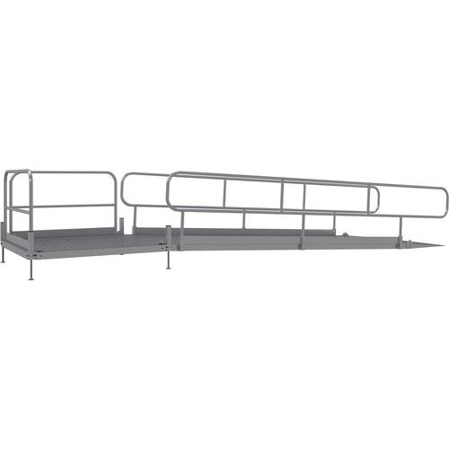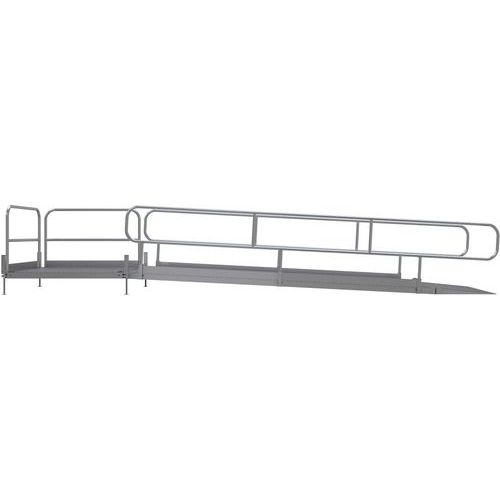 | Productnaam | Rolstoeloprijplaat aluminium, Lengte: 660 cm, Totale breedte: 1500 mm, Totale hoogte: 900 mm, Kleur: Grijs |