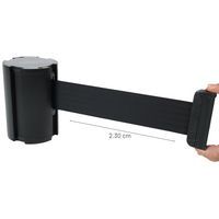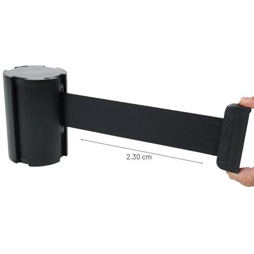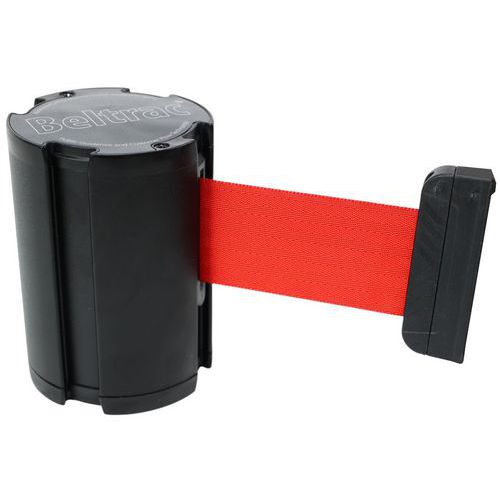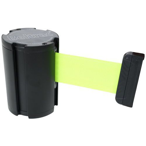 Rolsysteem voor aan de muur met een band om een zone af te sluiten. Makkelijke demontage dankzij de zelfoprollende riemen. Stevige en betrouwbare bevestiging van de trekband. Geschikt voor buitengebruik.