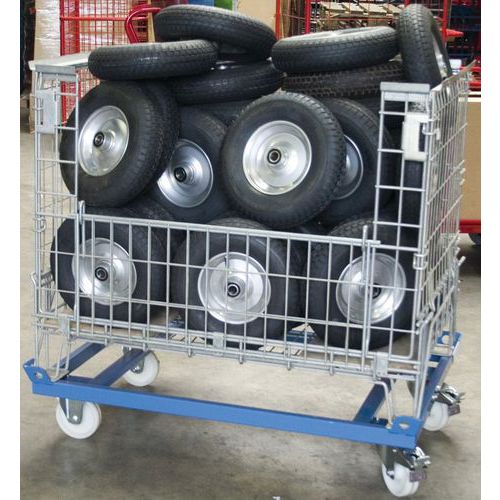 - Lage, stalen rolwagen met mechanisch gelaste hoeken voor sturing en een goede stabilisatie van de lading.