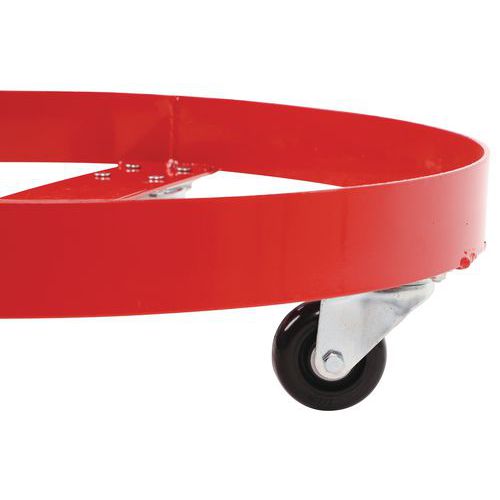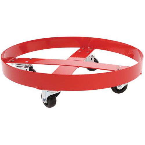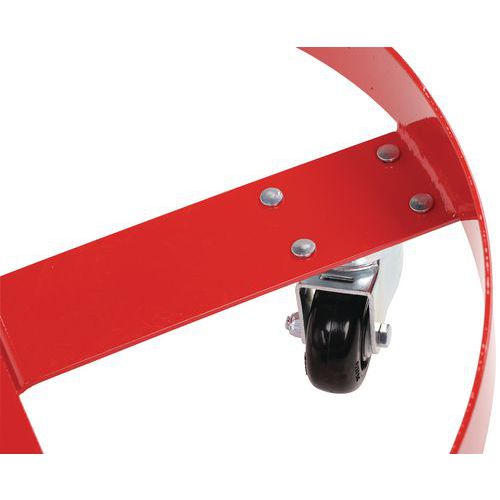| Productnaam | Rolwagen voor vaten, Max. belasting: 410 kg, Max. Ø vat: 597 mm, Totale hoogte: 150 mm, Zwenkwiel Ø: 75 mm |