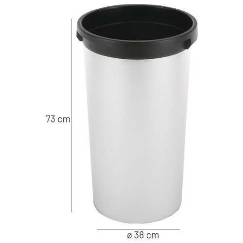 | Productnaam | Ronde afvalbak Iris, Totale inhoud: 50 L, Opening: Geen deksel, Materiaal: Kunststof |