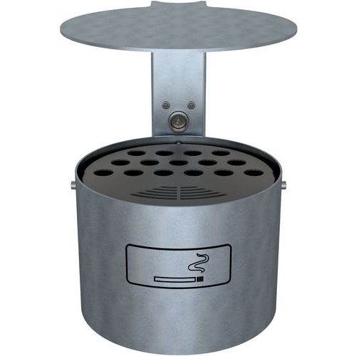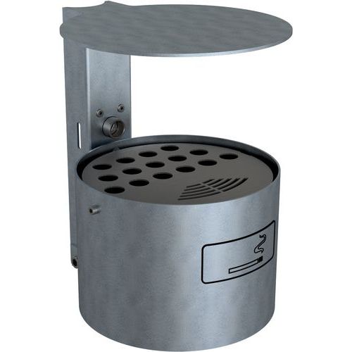 | Productnaam | Ronde asbak met dak te bevestigen zonder steunvoet, Asbak inhoud: 4 L, Kleur: Lichtgrijs, Hoogte: 29 cm |