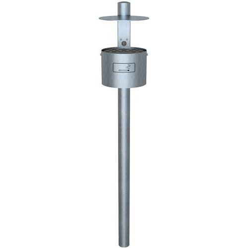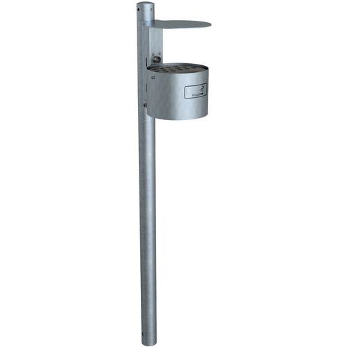 | Productnaam | Ronde asbak met vast dak met steunpoot, Asbak inhoud: 4 L, Kleur: Lichtgrijs, Hoogte: 29 cm, Lengtes: 290 mm |