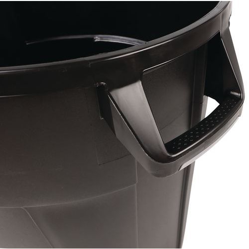 Cilindrische container met slipvaste handgrepen voor eenvoudig verplaatsen. Voorgevormde structuur van de container vereenvoudigt het verwijderen van de afvalzakken. Ronde, hygiënische container waarvan het materiaal eenvoudig kan worden gereinigd.