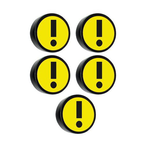 Rond magneetblok om documenten op te hangen of te bevestigen op metalen oppervlakken. Gekleurd met symbool 'uitroepteken' geeft uw displays een vrolijk tintje. Kies voor visuele communicatie