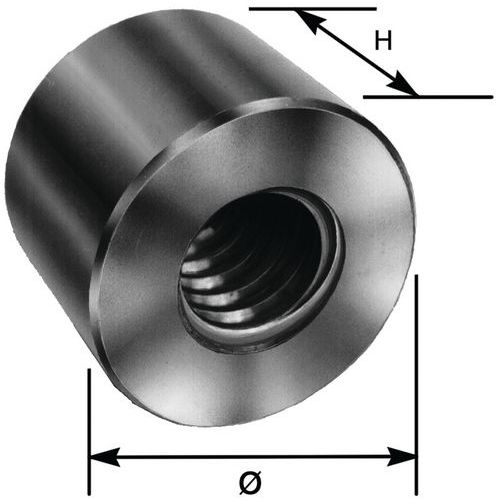 Ronde moer van staal met rechtse trapeziumvormige schroefdraad