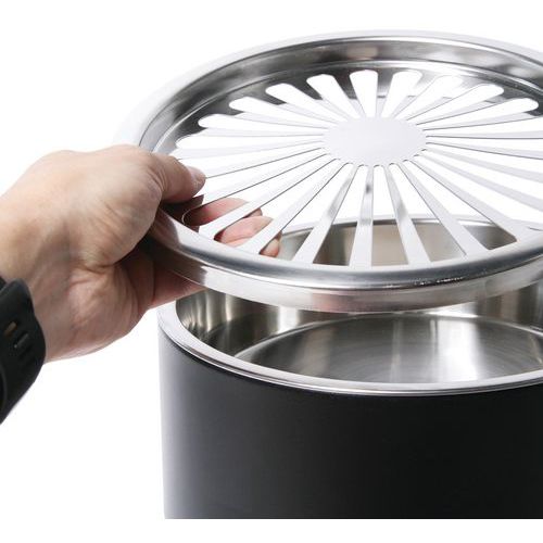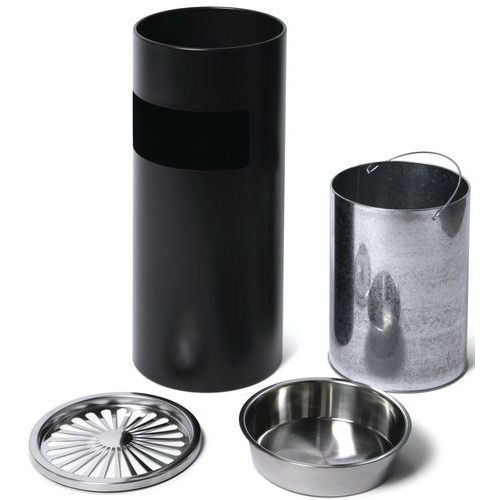 | Productnaam | Ronde prullenbak met asbak Indoor/Outdoor, Materiaal: Staal, Kleur: Zwart, Vorm: Rond, Hoogte: 60 cm |
