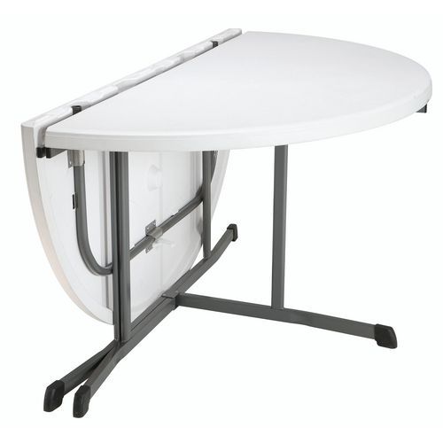 | Productnaam | Ronde tafel die twee keer kan worden ingeklapt, Type onderstel: L-poot, Hoogte: 74 cm, Breedte: 150 cm |