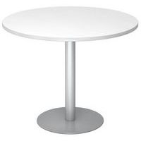 Ronde vergadertafel 100 cm, Tafelblad kleur: Wit, Onderstel kleur: Zilver, Meubellijn: Mittis Minos