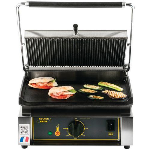 - Contactgrill met gegroefde gietijzeren platen.