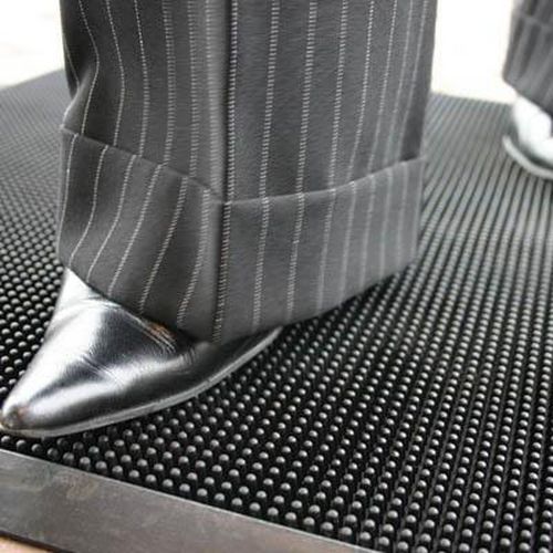 Flexibele rubberen noppen schrapen vuil weg en houden het vast in de stevige basis.