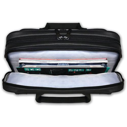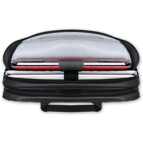 Gestoffeerd vak voor 14''/15.6'' notebook met tussenschot voor optimale afstelling van het apparaat.