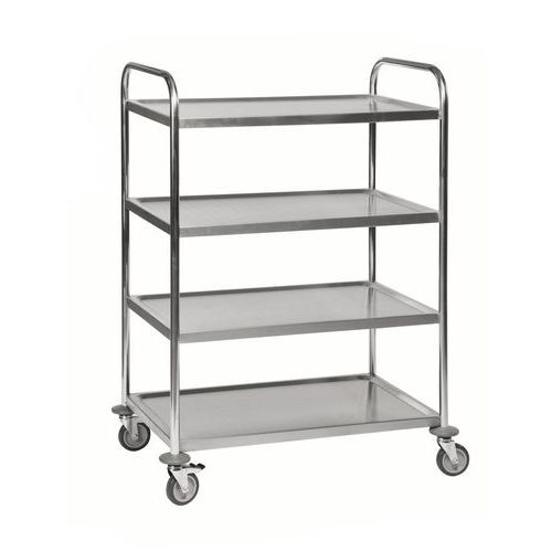 | Productnaam | RVS trolley met 4 plateaus KM60356, Max. belasting: 100 kg, Totale hoogte: 1260 mm, Totale breedte: 590 mm |