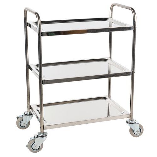 Rvs wagen - 3 legborden - Draagvermogen 100 kg - Manutan Expert