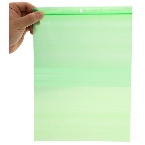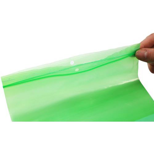 Groen gripzakje met ritssluiting voor openen en sluiten. Geribbelde flap voor een betere grip. Zakje met ophangopening. Zorgt voor een goede bescherming van producten door stof buiten te houden.