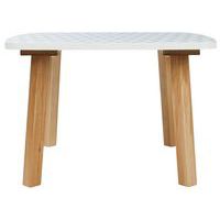 Spaanplaat bovenkant Melamine oppervlak met decoratie. Hoogte tafelblad 40 cm. 20 mm dik blad met gefineerde randen. Gelakte massief houten basis, sectie 40 x 40 mm. Montageklaar geleverd met instructies (schroeven meegeleverd). Gemaakt in de EU Klantgarantie : 10 jaar