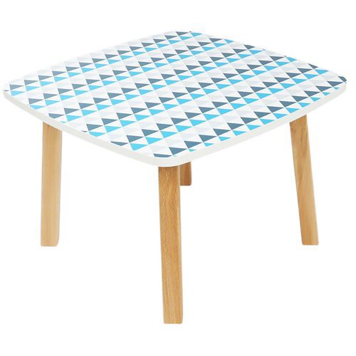 Spaanplaat bovenkant Melamine oppervlak met decoratie. Hoogte tafelblad 40 cm. 20 mm dik blad met gefineerde randen. Gelakte massief houten basis, sectie 40 x 40 mm. Montageklaar geleverd met instructies (schroeven meegeleverd).