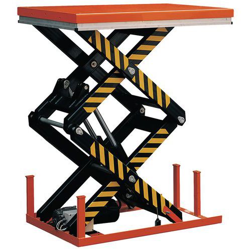 - Elektrische dubbele schaarheftafel met een hefvermogen van 1 tot 4 ton