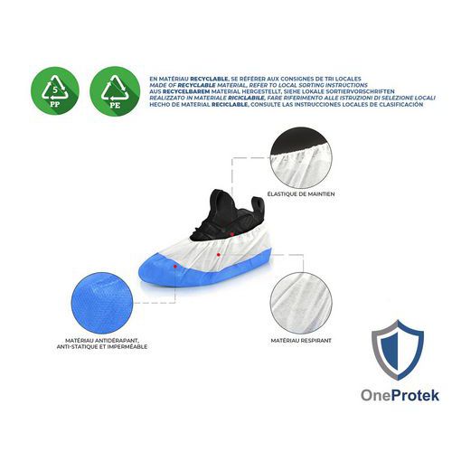 - Schoenhoes van twee materialen (polyethyleen/polypropyleen) OneProtek, waterdicht, dus te gebruiken in een vochtige omgeving.