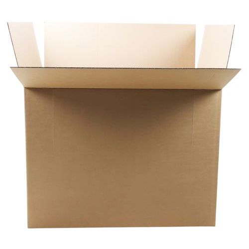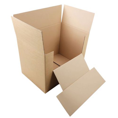 Amerikaanse doos van kraftkarton, bestand tegen stapelen. Dubbellaags golfkarton, schokbestendig en bestand tegen perforatie. Stevig: goed bestand tegen verticale druk. Kan na plaatsing op een pallet geniet of omsnoerd worden om het gehele pakket vast te houden. Keuze tussen doos met of zonder tuimelklep om het vullen te vereenvoudigen.