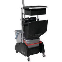 - Open, flexibele wagen met 1 vak en mopsysteem met 2 emmers met verticale wringpers.