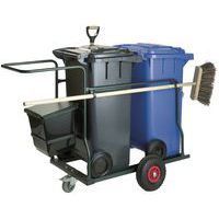 - Containerkar compleet met 2x 120 ltr container, bezem, schop en afvalbakje van 21 ltr. De kar is voorzien van 2 luchtbanden en 1 zwenkbaar neuswieltje. Standaard met grijze containers, andere kleuren containers a.u.b. specificeren bij uw bestelling.