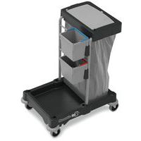 - Multifunctionele modulaire wagen, speciaal ontwikkeld voor het verzamelen van afval en het reinigen van oppervlakken in professionele omgevingen.