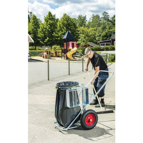 | Productnaam | Schoonmaakwagen met zakhouder, Totale inhoud: 125 L, Kleur: Gegalvaniseerd, Hoogte: 100 cm, Breedte: 82 cm |