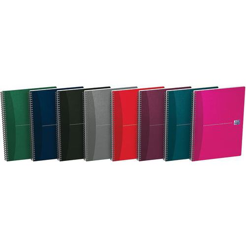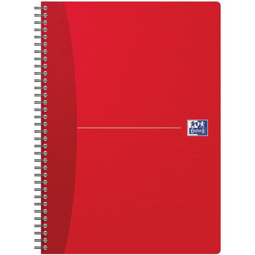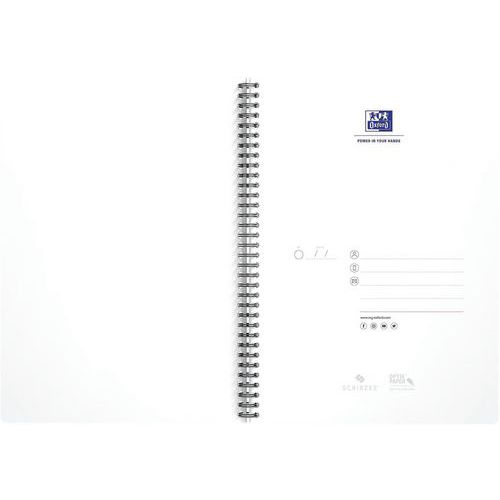 Schrift Oxford Office Essentials A4 gelinieerd 7 mm 180. pagina's met integraalband en gekleurde kartonnen kaft. A4-formaat - breedte: 21 cm x hoogte: 29,7 cm. Gelinieerd, lijntjes met 7 mm tussenruimte, met bovenmarge en dubbele marge. Ondoorzichtige, soepele kaft van geplastificeerd karton. Zwarte integraalband. 180 pagina's - kwaliteit Optik Paper, papier 90 g extra wit met zijdeglans. Het schrift wordt geleverd met een verwijderbare bladwijzer. Voorin het schrift bevindt zich een bedrukt schutblad met een schrijfzone. Schrift met EU Ecolabel (lage milieu-impact bij de productie van het Papier﴿ Kleur van de omslag: original blauw, bosgroen, paars en blauw.