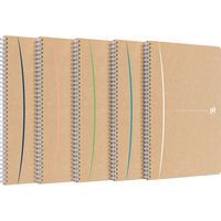 Spiraalschrift Oxford Touareg A5 kleine ruitjes 5 mm. 180 pagina's met integraalband en kartonnen kaft. Verschillende kleuren gerecycled papier. Set van 5 kleuren: ijswit, kwartsroze, groen, amazoniet, pauwengroen en kobaltblauw.