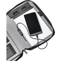 Schrijfmap A5 Smart organizer met powerbank, Materiaal: Stof, Kleur: Antraciet, Breedte: 21 cm