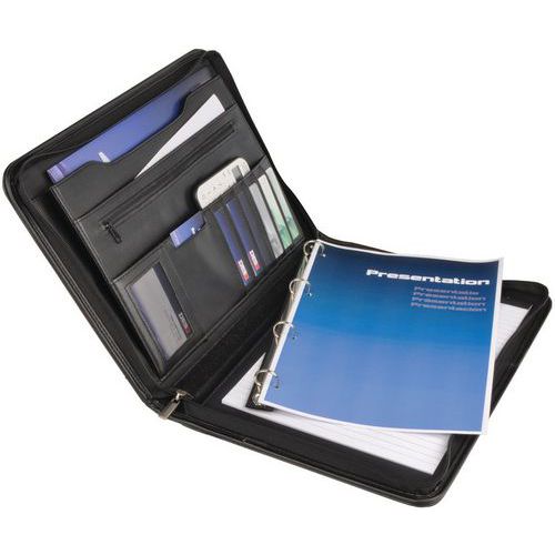 | Productnaam | Conferentiemap A4 met uitneembaar ringmechaniek 25 mm, Materiaal: Imitatieleer, Kleur: Zwart |