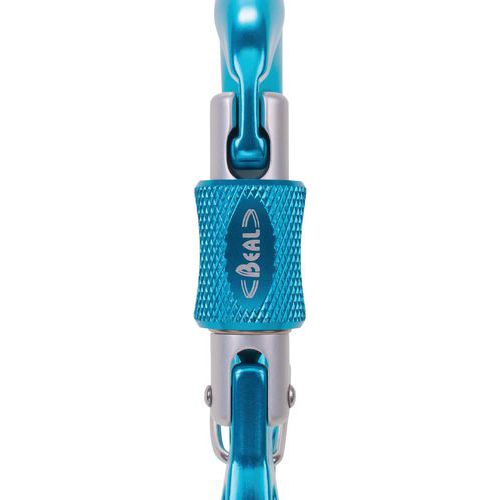 Dankzij de pal die de zekeringsring van de gordel vasthoudt, is het onmogelijk om de karabiner om te draaien, zodat de karabiner altijd in de juiste as werkt en er geen risico is dat het zekeringstouw verzwakt.