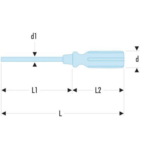 - Het bled loopt door in de handgreep, waardoor een vastzittende schroef kan worden losgetikt.