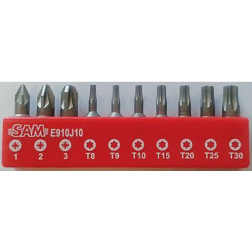 | Productnaam | Schroevendraaierbitset Pozidriv en Torx 10 delig, Schroef uitsparing: Torx, Type nr.: E-910J10 |