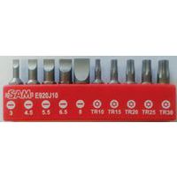 | Productnaam | Schroevendraaierbitset sleuf en Resistorx 10 delig, Schroef uitsparing: Torx, Type nr.: E-920J10 |
